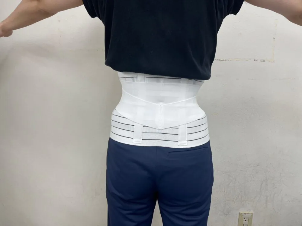 コルセットを装着することで、腹圧を上げやすくなります。また腰の動きを多少固定(動かしにくく)することで負担の軽減ができます。