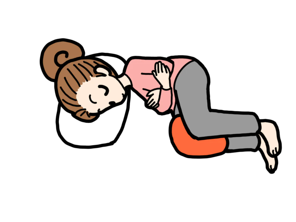 この際、両膝の間に厚めのクッションを挟むと、上側の足が内側に倒れ込むのを防げます。お尻周りの筋肉の緊張を緩和し、神経への圧迫軽減につながります。