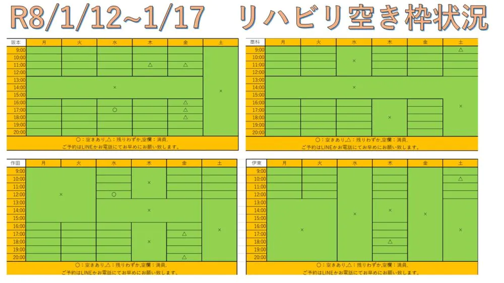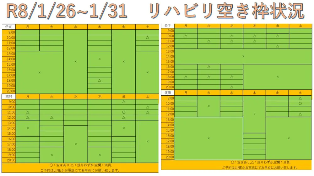 R8.1/26〜1/31 リハビリ空き枠情報