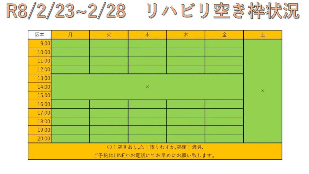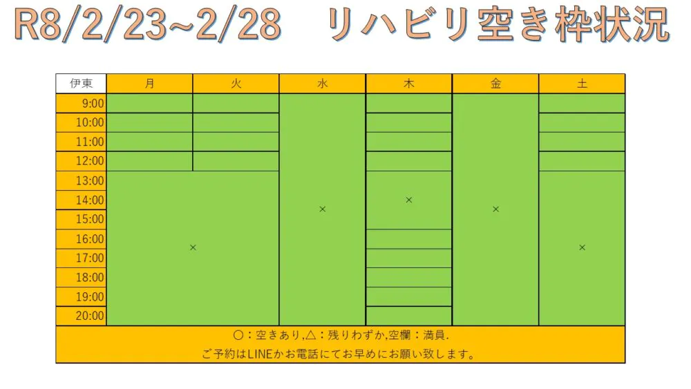 R8.2/23〜2/28 リハビリ空き枠情報